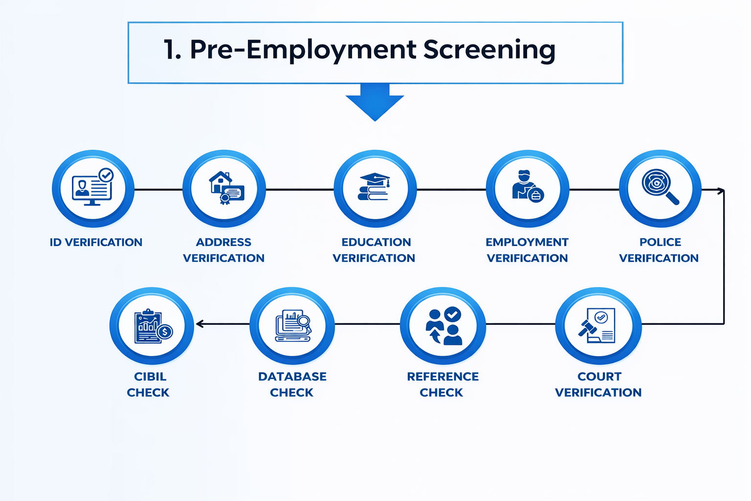 Our Pre-Employment Screening process verifies a candidate’s background before hiring, including identity, education, employment history, address, criminal records, references, and document authentication. This ensures all information is accurate and compliant, helping businesses reduce hiring risks, prevent fraud, and protect their reputation.